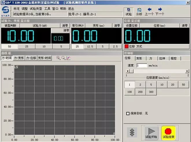 d.测试过程中荷重-时间、荷重-位移、位移-时间、应力-应变、荷重-两点延伸显示各类曲线可随即切换。