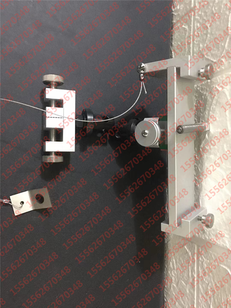 将胶粘带粘贴于固定基板上,通过拉力机上测试头对胶粘带进行提升,从而检测胶粘带的剥离强度。将拉绳一端与拉环固定,另一端穿过滑轮,90°垂直上折,与拉力试验机的上横梁固定,将胶粘带一端粘贴在标准钢板上,另一端90°垂直上折,用拉力试验机上夹具将其固定;控制拉力试验机横梁和上夹具匀速上升,横梁通过拉绳带动移动块水平直线运动,从而保证与上夹具固定胶粘带的一端始终垂直于标准钢板,拉力试验机读取相应力值等数据,至此完成胶粘带剥离强度试验。